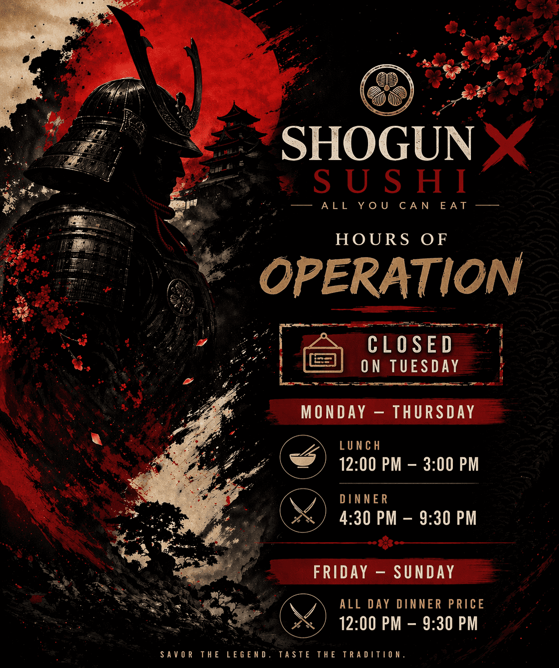 Our skilled and passionate chefs craft each dish using only the freshest ingredients. With bold, exotic flavors and savory sauces, every plate delivers a rich taste journey. From the moment the aromas hit your senses, you’ll know you’re in for something special — only at Shogun X.